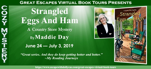 I’m pleased to have author Maddie Day from Amesbury, Massachusetts here to chat about her writing and her cozy mystery, Strangled Eggs and Ham, A Country Store Mystery, that’s on blog tour with Escape with Dollycas into a Good Book.