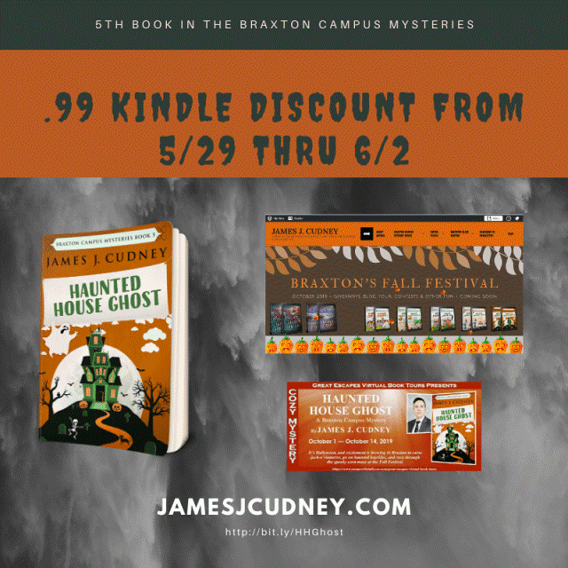 Not only were many of the books in the Braxton Campus Mysteries discounted to .99 this week, but the 5th book, Haunted House Ghost, is also available as a Kindle download for only .99 from 5/29 thru 6/2. To take advantage of this discount, visit Amazon via this link.