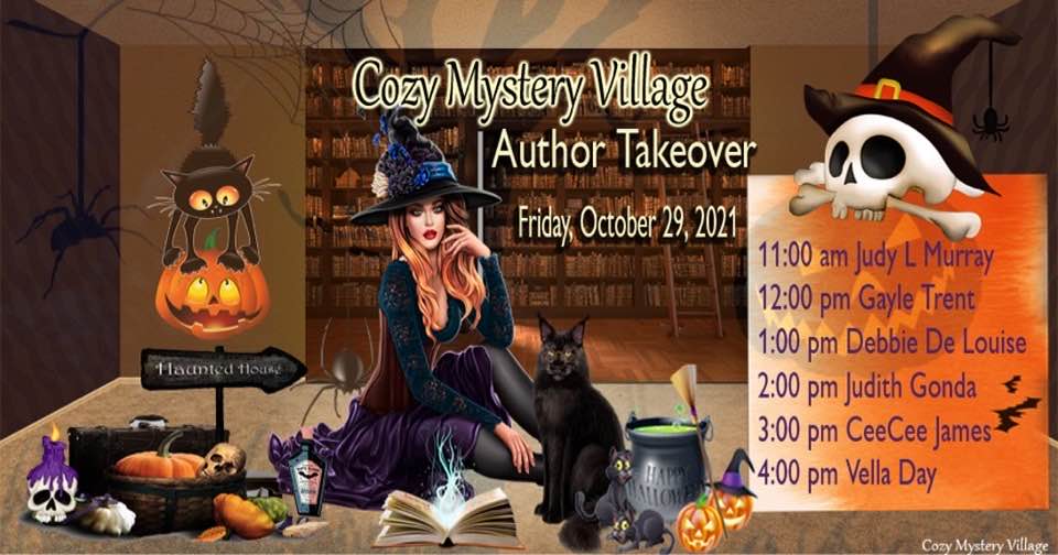 On Friday, October 29, I’ll be taking over on the Cozy Mystery Village Facebook page from 1-2 pm EST. at https://www.facebook.com/groups/2662518460643435